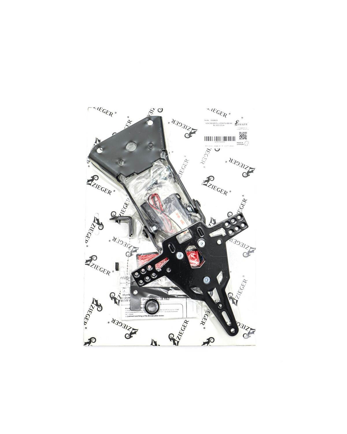 Caractéristiques Support Plaque Immatriculation Moto Zieger LCS PLT HLD TYPE A CFMOTO 650N